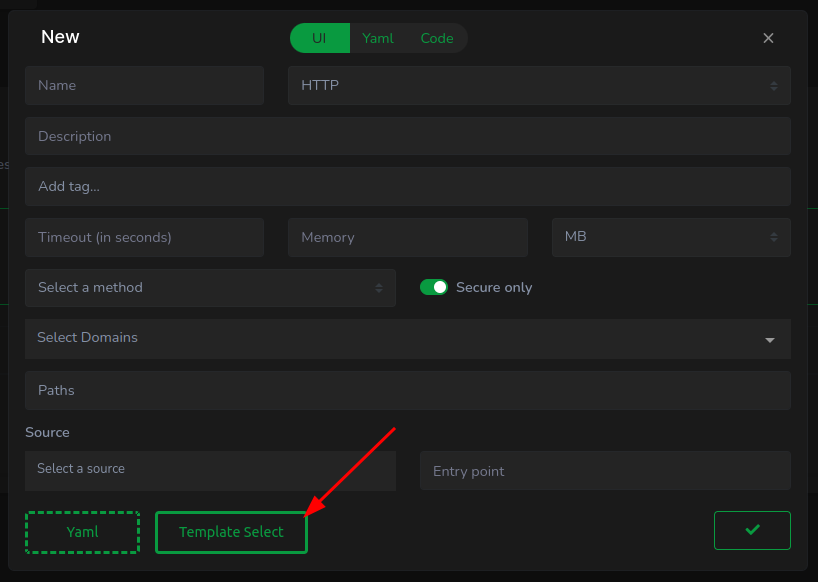 Prior to proceeding, (1) review the code, which should process an HTTP request and return “pong”. Feel free to adjust the message, then (2) confirm the creation of the function by clicking the checkmark button.