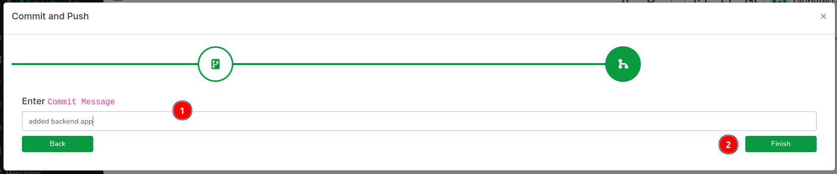 Changes are currently only saved locally in your browser's virtual filesystem. Click on the green button on the bottom right corner. Applicatuion configuration and file system structure has been created in the config repo.