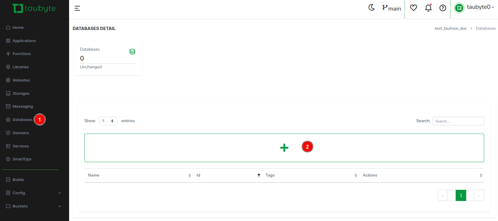 Taubyte databasees are instantiated on the fly when you first use it. This is why you can use regular expressions as a matcher. For example, if we used /profile/history/[^/]+, opening /profile/history/userA would create a database just for that user.
