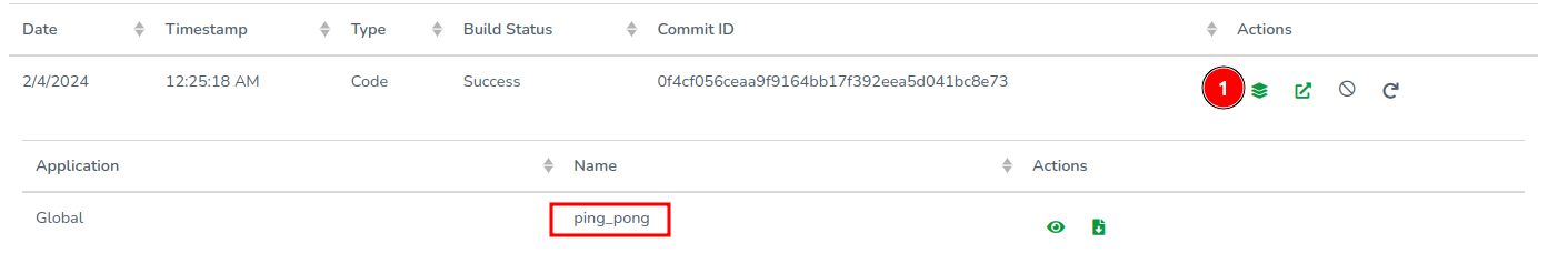 After a few seconds, the build should complete. Click on Refresh if it seems delayed. Then, click on the stack icon to view the ping_pong function.