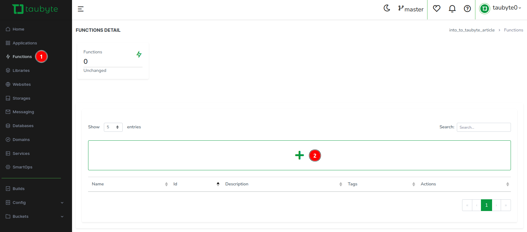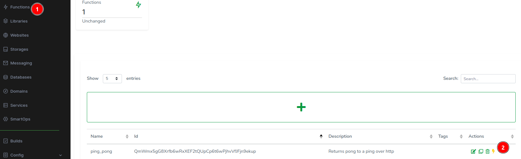 Navigate to Functions in the side menu and click the + button