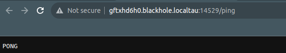 You can test the function using curl as follows, making sure to replace gftxhd6h0.blackhole.localtau with your own generated domain: