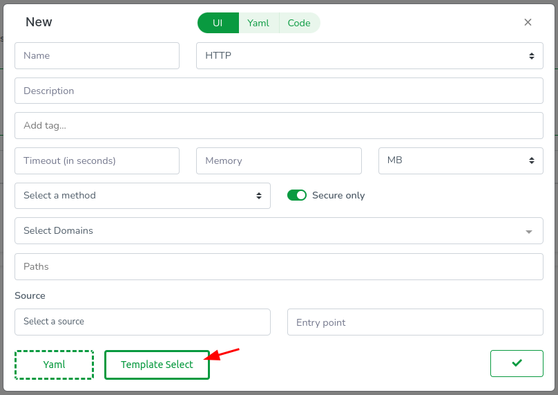 Instead of filling out fields manually, let's use a template. Click Template Select